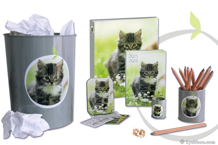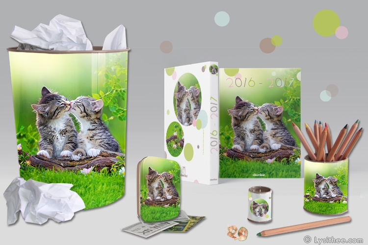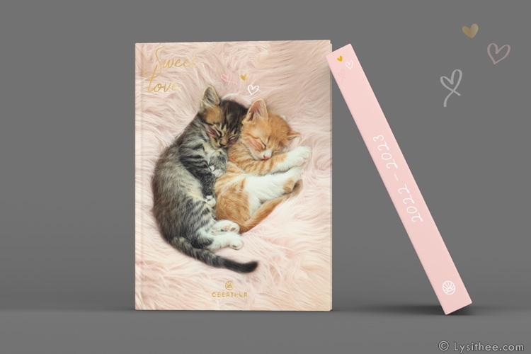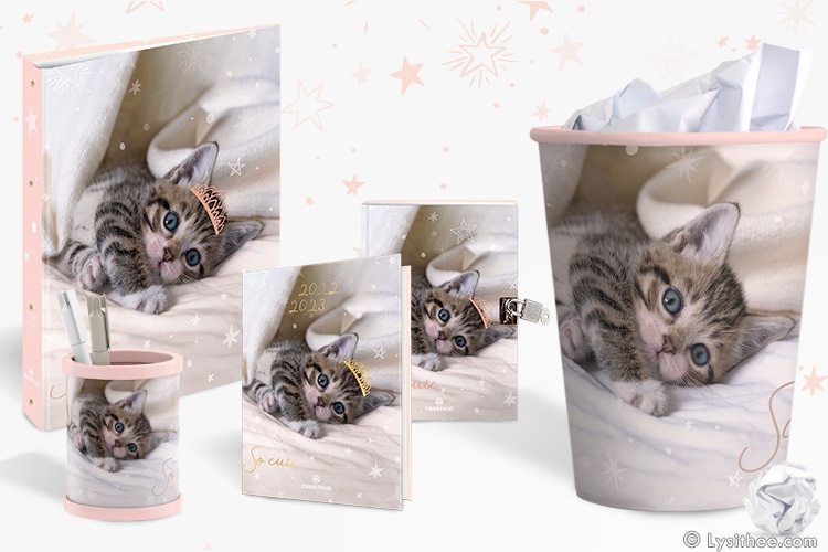 Chatons lovés, agenda scolaire (avec dorure) et papeterie assortie
