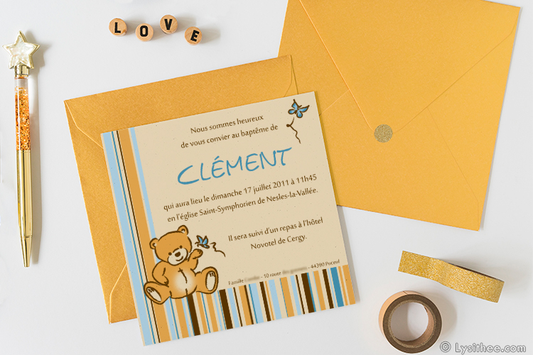 Invitation baptême 14x14cm