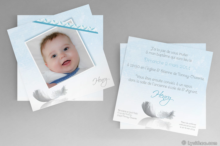 Faire-part Baptême Plume