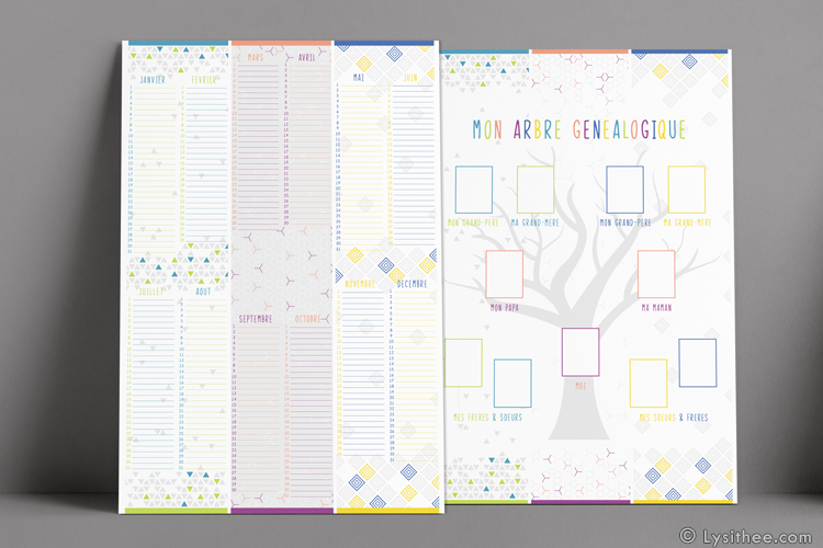 Calendrier perpétuel Anniversaires, Arbre Généalogique au dos