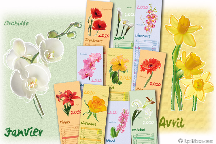 Déclinaisons sur plaques d’Arc-en-ciel Floral (bloc éphéméride ou feuillets mensuels)