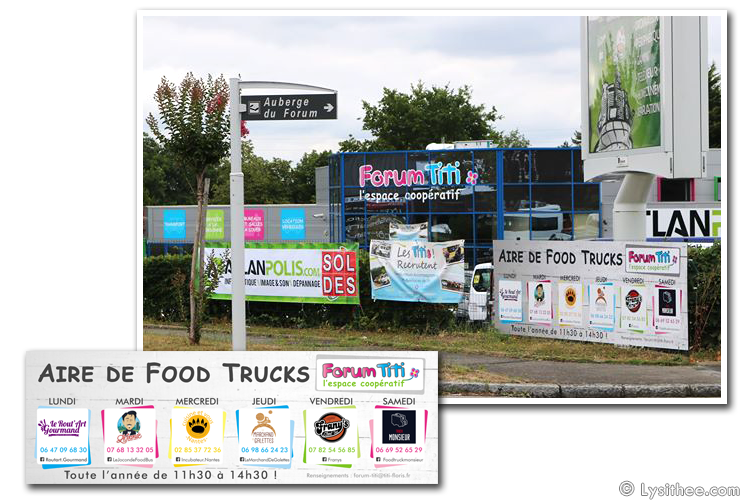 Panneau ‘Aire de Food Trucks’ et bâche ‘Recrutement’