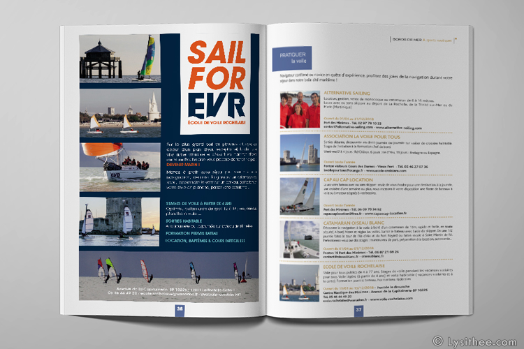 Publicité (français, anglais et espagnol) dans la brochure de l’Office de Tourisme de La Rochelle