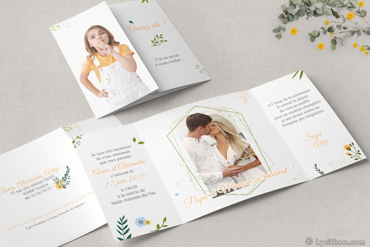 Annonce du mariage par le(s) enfant(s), dans une ambiance bucolique.