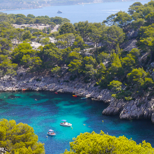 Effacement des plaisanciers dans la calanque et correction de la surexposition de l'arrière-plan