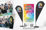 Logo et charte graphique, oriflammes et bannière déroulante pour une association ludique