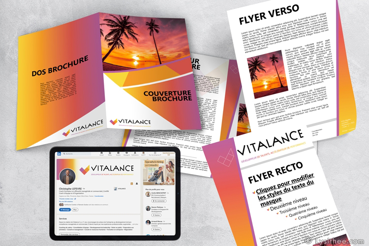 Bannières réseaux sociaux et gabarits (brochure, flyer, présentation, ...) de Vitalance